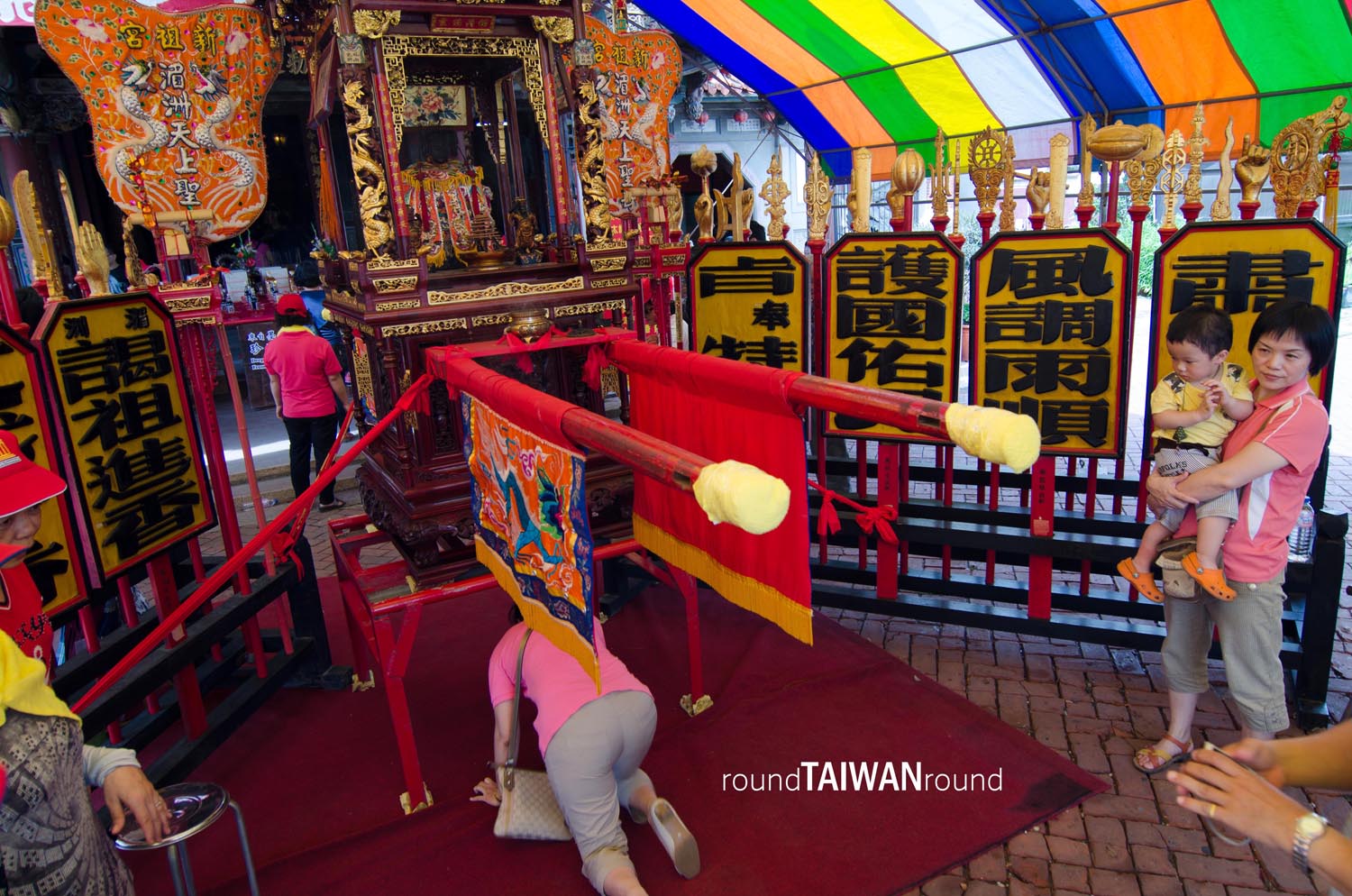 Official administrator came to Lukang Shingzu Temple for worship on every 1st and 15th lunar month during Qing Dynasty. Once reaching the front gate of the temple, official administrator had to dismount from horse and perform the great kowtow ritual (“three kneelings and nine kowtows**”, which involves kneeling from a standing position three times, and each time, performing the kowtow three times while kneeling). On these dates, folk were not allowed to get in. Until now, there is still a dismount tablet (下馬碑 or also called Xiamabei, which requires riders to dismount from horse) in front of the gate.