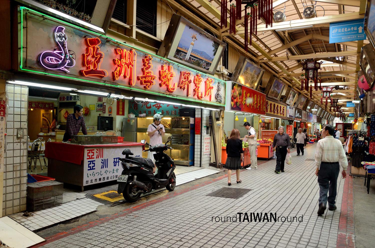 位在艋舺龍山寺附近的華西街,是台灣第一個政府認證的觀光夜市,其仿造日本街道的設計,挑高的屋簷與並排的商家,讓遊客縱使在雨天也不會淋到雨,筆直的一條街也不會讓人因為看不懂中文而迷路。遊客從旅遊書上看到的,最多是介紹其以去毒、壯陽為號召的蛇店及鱉店,而日本人喜愛的台南擔仔麵也是從此夜市發跡。整條街上有著各式山產野味與海鮮小吃,多是超過三十年老店。但對於大多數的台北人來說,是不太會造訪這的,畢竟現在喝蛇湯吃鱉肉的人少之又少。